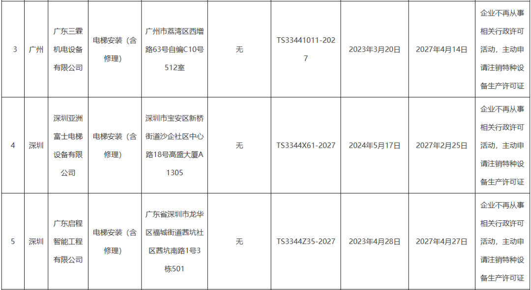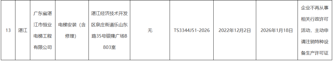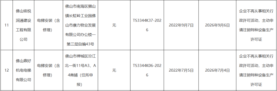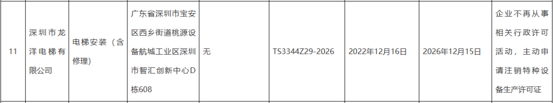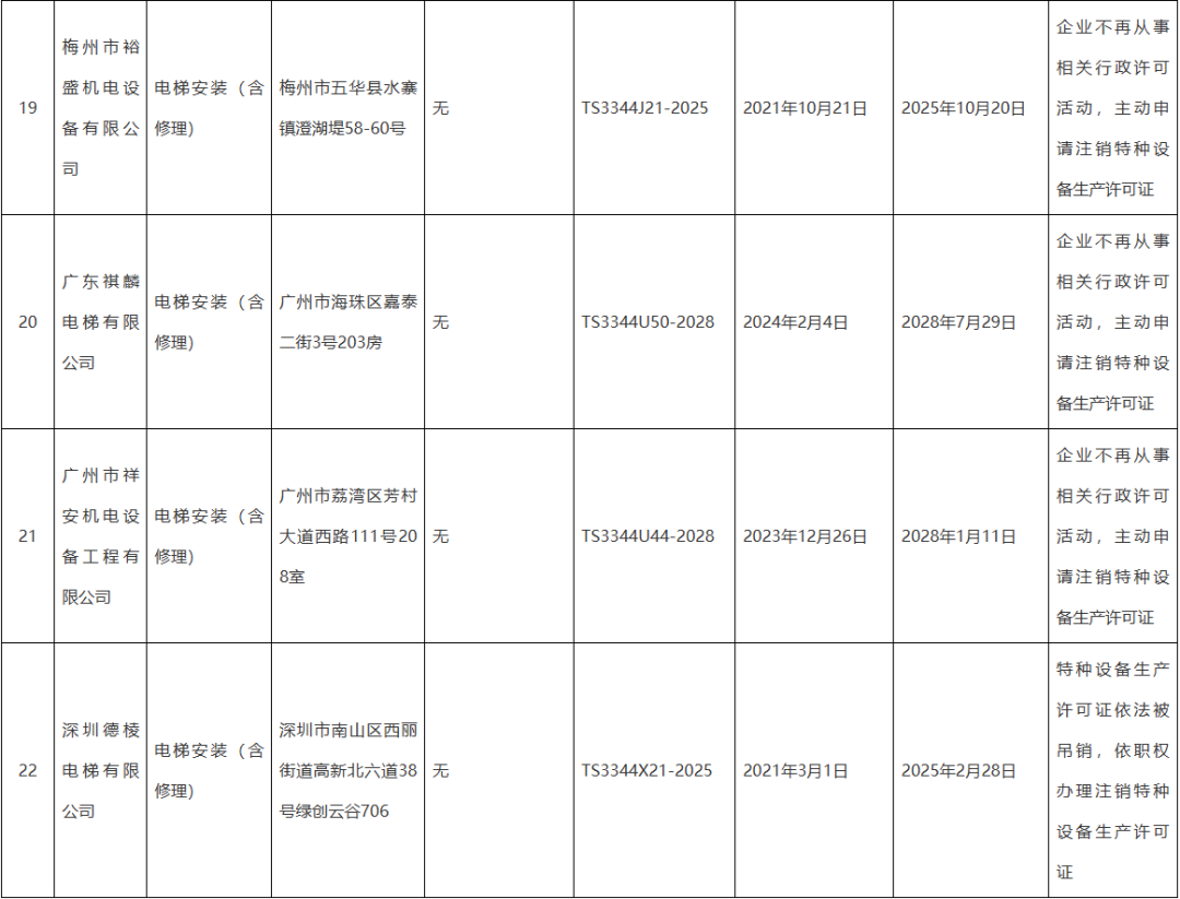 2025年第22号公告里,11家企业陆续注销,其中深圳德棱电梯更是因违规被依法吊销资质,成为整份名单里唯一非主动退场的案例;